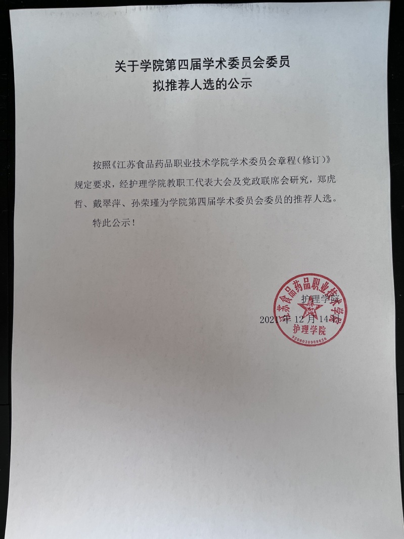 关于公司第四届学术委员会委员拟推荐人选的公示