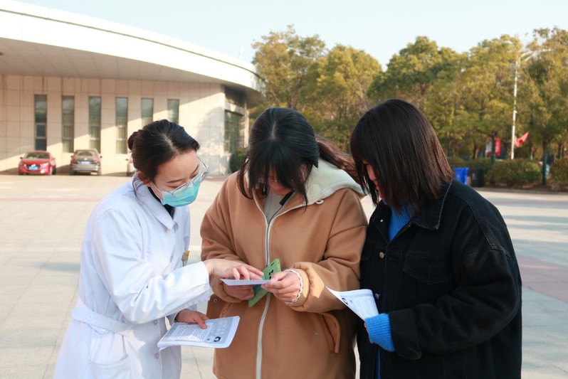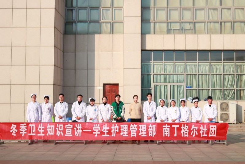 公司来利国际旗舰厅员工护理管理部与南丁格尔社团成员共同携手,于2021年12月21日下午在校图书馆门前为全校员工进行冬季卫生知识宣讲。