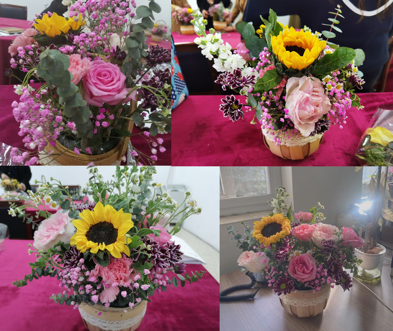 本次插花活动借用花木来抒发女教职工的高雅情怀,以花感人,以花育人,意在培养女教职工知美、爱美、会美的美好生活情趣,让女同胞们度过一个有意义的节日。在花的世界里,女教职工们书写下春天的讯息,用插花展现心中的锦簇花团。相信未来的每一天,全体教师将更加相亲相爱,为美好的明天奉献青春和力量。