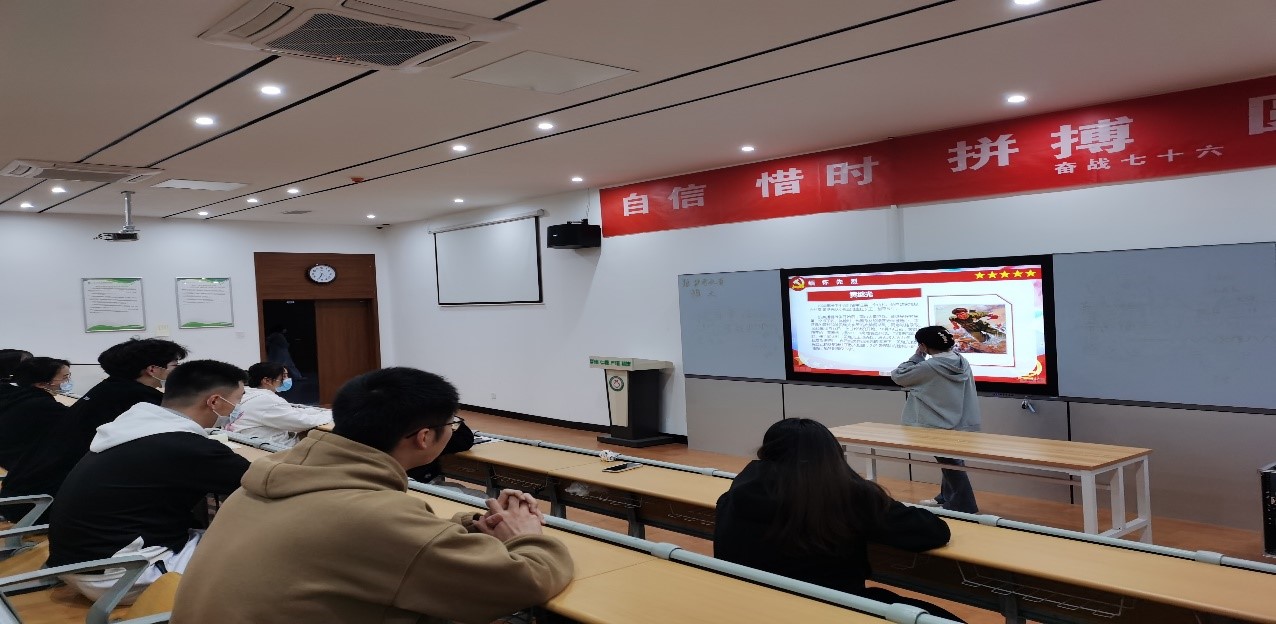 接下来由员工党员杨梦如带领大家学习缅怀先烈。杨梦如同志通过例举黄继光、董存瑞、邱少云、刘胡兰、王小二、雷锋等革命先烈的光荣事迹,让同学们深刻感受到烈士们为了人民幸福、民族解放和国家富强,英勇奋斗,直至流尽最后一滴血,永远长眠在了我们脚下的这片热土,他们用生命书写了爱国主义的华丽篇章!他们是中国的脊梁!