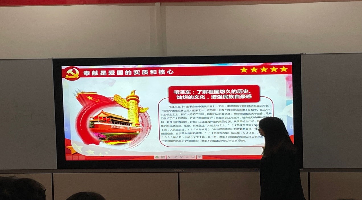最后,由倪美琳同志带领大家学习奉献是爱国的实质和核心。爱国主义作为我国人民对于国家的深厚情谊,不是生而就有的,而是在漫长历史中、在征服自然、争取生存和发展实践中产生和形成的。
