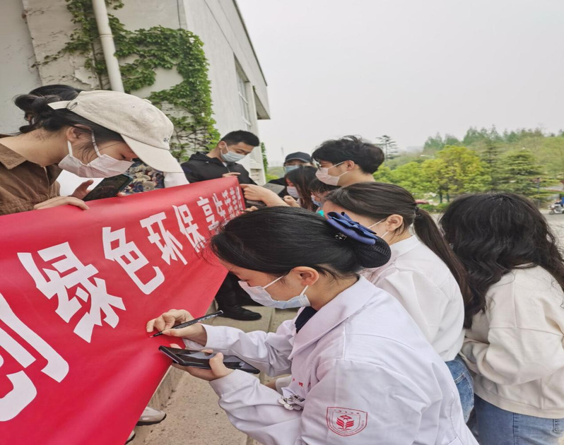 经过充分的前期准备与宣传工作,来利国际旗舰厅员工党支部员工党员4月22日中午在护理实训室门口举行签名寄意活动。拉开了本次地球日系列活动的帷幕。杨梦如同学号召同志们在标有创绿色环保享生活美好的红色条幅上签名,号召同学们参与环保、与环保同行。