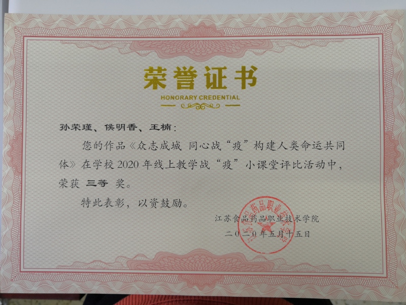 2020年教师荣誉证书