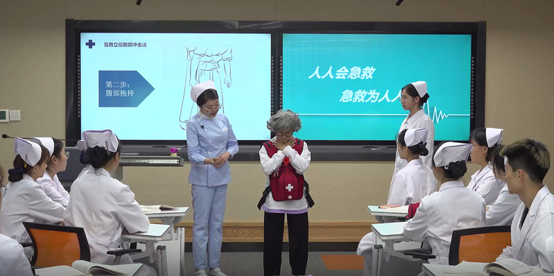 此次课以“海姆立克急救法”项目为主线,包括气道异物梗阻的发生机制、海姆立克急救的原理、海姆立克急救法的实施以及操作要点等。教学过程化抽象为形象,员工积极参与教学,锻炼自主学习能力和小组合作精神,既突出了员工的主体地位,也直观地体现了“做中教、做中学”的教学理念,教学目标明确,教学重难点突出,采用案例教学、情景模拟的教学方法,注重培养临床思维,对接护士岗位能力标准,由易到难,层层递进,多元化的考核评价体系及时评价员工学习效果,同时自然融入课程思政,引导员工正确的价值观。