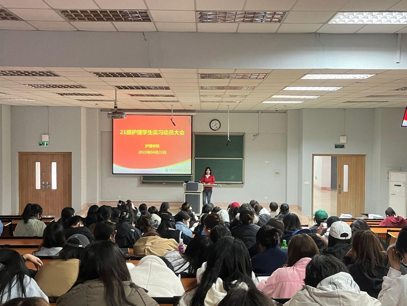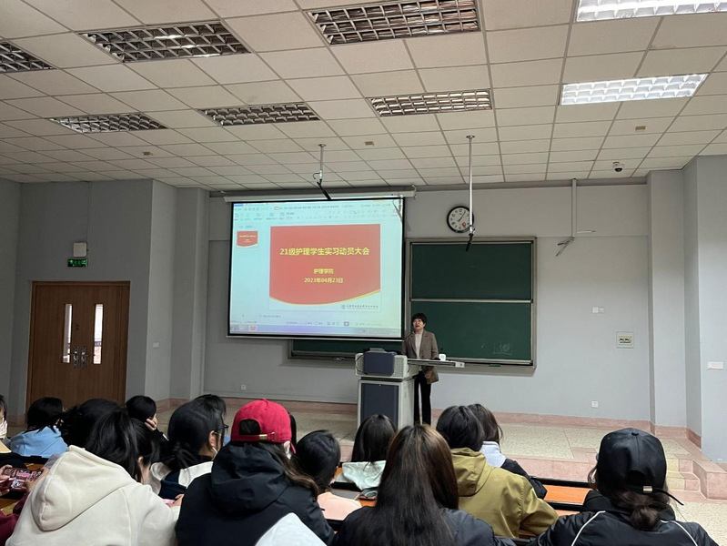 4月23日下午来利国际旗舰厅在教学楼B108教室举办2021护理专业员工毕业实习动员大会。校教务处处长李媛,来利国际旗舰厅经理戴翠萍、副经理孙荣瑾、实习管理老师陆舒婷等出席本次会议并对实习相关内容进行了解读。