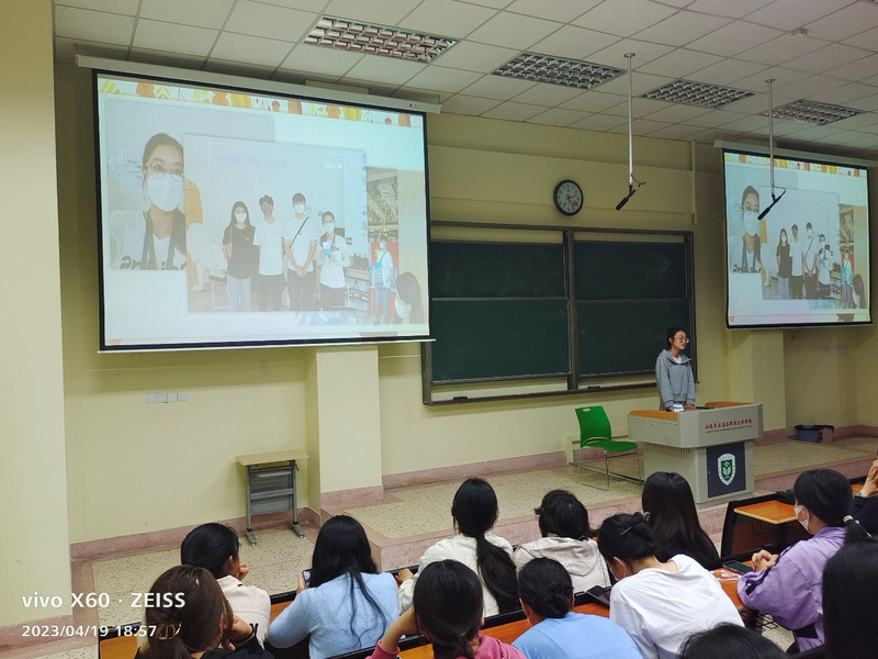 来自护理专业大三和大二的两名员工分别分别从不同的角度为大家再现澳门游学的经历。黄树洁同学通过对澳门形容入手,“澳门很小,小到还没有浦东机场大,澳门又很大,大到可以包容世界的文化”,主要分享了此次游学的感受,也指出在校期间如何提升自己来把握游学机会。李嘉欣同学展示了丰富多彩的照片为员工们再现了澳门之旅,用一幅幅图片记录到访的地方,从中感受到了爱国和统一,“读万卷书不如行万里路,虽然研学时间不长,但是这让我不仅收获了友谊,还让我感受到爱国和统一是永远不变的宗旨”。听完两位同学的分享后,大家就自己感兴趣的问题提问,黄树洁和李嘉欣同学也积极热情地予以解释,并探讨交流。
