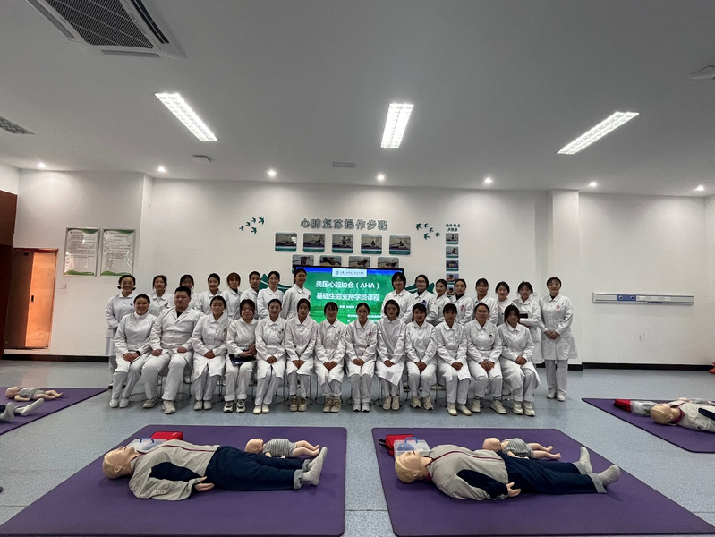 培训采用理论和操作相结合的教学方式进行,每三人一组,每组配一套模拟急救教具,内容主要包括成人、儿童、婴儿实施高质量CPR的要点以及高效团队的合作分工,在抢救过程中如何有效地使用AED等,学员们表现出极高的热情,积极讨论互动,轮流演练,导师们耐心细致的在旁指导。最终,全体学员以优异成绩通过了AHA严格的理论与操作考核。