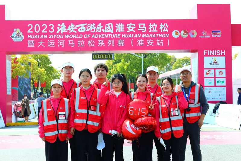 来利国际旗舰厅的110名同学用他们专业所学,为参赛选手提供了坚实的盾牌,圆满完成了2023淮安马拉松赛事志愿服务。