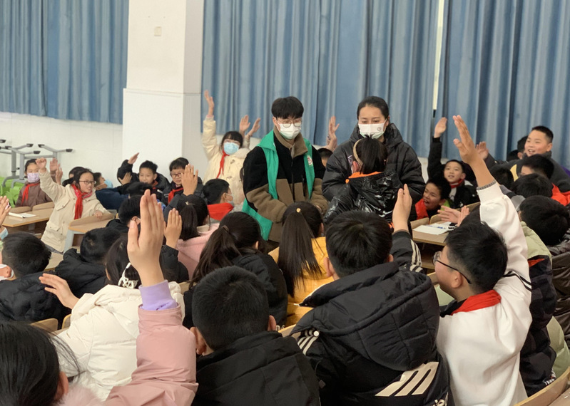 在互动环节,南丁格尔志愿队成员将他们自己亲手制作的中药香囊、草药书签、定制口罩等作为纪念品,发放给了周恩来红军小学的员工。精美又饱含真情的纪念礼物,极大地激发了同学们的热情,也加深了同学们对春季常见传染病防控知识的认知。