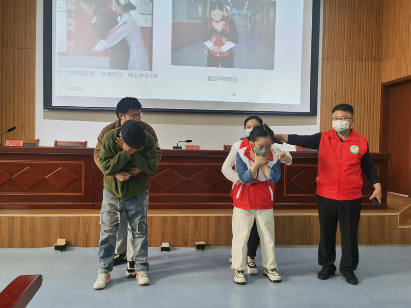 讲座开始前,郑虎哲简要阐释了掌握应急救护技能的重要性和必要性,鼓励师生练就一身真本领,掌握一手好技术,抓住抢救黄金时间,关键时刻挽救生命。随后,张扬着重讲述了心肺复苏的理论知识,并对心肺复苏技术的操作要点及注意事项进行细致讲解,包括判断是否丧失意识、有无自主呼吸、有无脉搏及如何进行胸外心脏按压、清理口腔异物等。