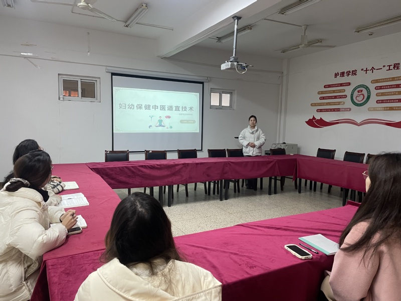 12月05日,护理专业全体专任教师开展了专业研讨,来利国际旗舰厅周倩倩老师分享了在南京妇幼保健院培训学习的“妇幼保健中医适宜技术”。