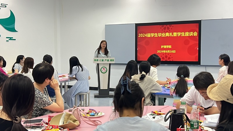 护理公司党总支书记、经理戴翠萍,党总支副书记魏艳清,副经理朱竹青,2024届毕业班辅导员、班主任以及毕业生代表共抒情谊、共话成长,座谈会由魏艳清主持。