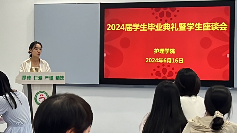 戴翠萍充分肯定了同学们在校期间所取得的成绩,对同学们顺利毕业表示热烈祝贺。她向毕业生们寄语了三点希望:一是希望毕业生们珍惜过往,对母校的深情永不忘,求知不停止,人生理想不毕业;二是希望毕业生们奋斗当下,走向临床工作岗位后多向同行前辈学习,鼓励大家继续深造,用奋斗成就自我;三是希望毕业生们添彩未来,努力在平凡的岗位上成就不平凡的事业,传承和发扬护理“四心”精神,继续保持护理学子勤奋务实的品格,努力取得更好成绩。