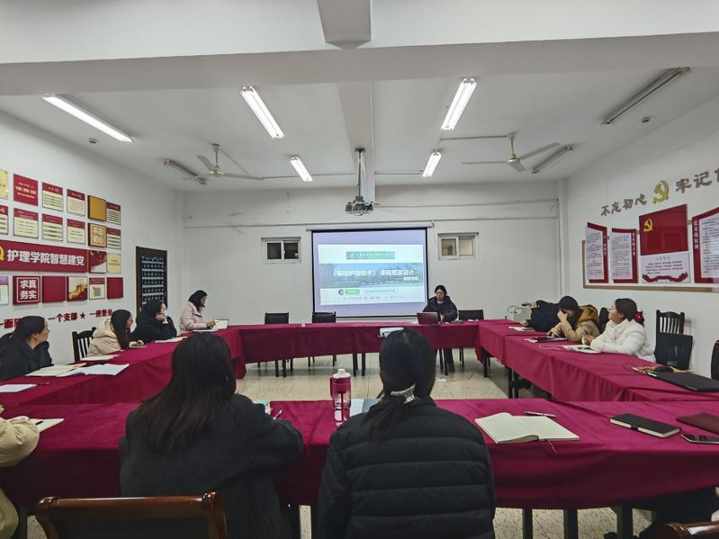 活动伊始,项老师从社会主义核心价值观层面与大家讨论了护理专业可以挖掘的课程思政点及融入路径,指出在护理实践教学中可深入挖掘诸如“敬业”于严谨护理操作、“友善”于和谐医患关系构建等契合点,为专业课程注入思政灵魂。随后杨雨微老师分享了《基础护理技术》课程思政的建设经验与成果。她的专业课程思政建设通过设置护理特色的课程思政教学目标,充分挖掘课程中蕴含的思想政治教育资源,改革教学方法,完善教学效果评价方式,在知识传播的过程中实现价值引领。