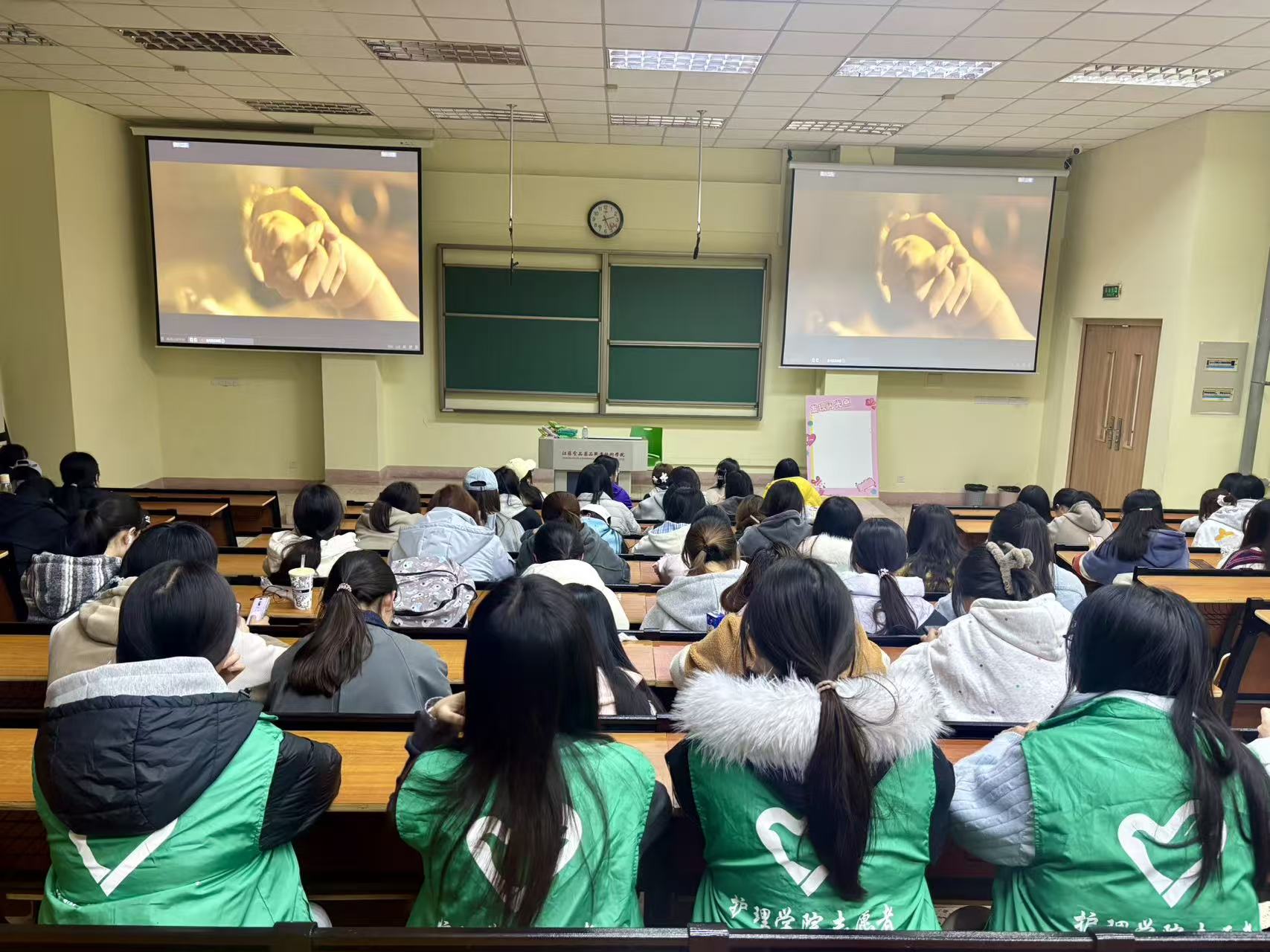 观影寄哀思,感悟家国情。4月1日晚,活动在教学楼A108举行。同学们在分发青团的氛围中了解寒食节历史,共同观看影片《我和我的父辈》,感悟先辈精神。现场设置“清明寄语墙”,同学们写下对先烈和亲人的深情寄语,汇聚成温情的“记忆墙”。